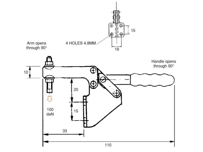 Home | Toggle Clamps | Manual Toggle Clamps | Horizontal Toggle Clamps | Front Mounting, Fixed Spindle | H100/3C