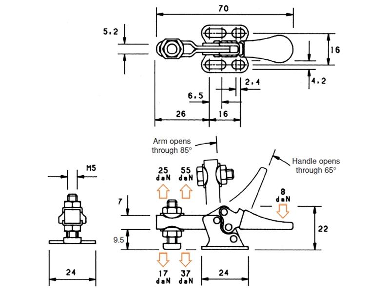 Home | Toggle Clamps | Manual Toggle Clamps | Horizontal Toggle Clamps | Flanged Base Adjustable Arm | H50/2BSS