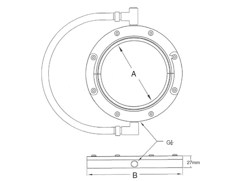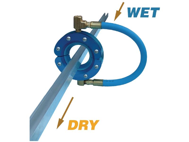 The high temperature Brauer Ring Blade with its stainless steel air supply loop hose is a clever device which is able to withstand temperatures up to 205 degrees celsius. It is used to dry, clean or cool any product that has no obvious beginning or end,like wire cable, aluminium extrusion, seal strips and many other mass produced long length products. The Ring Blade is able to be opened at a single hinge point and then be passed under any continuous length workpiece and closed up around the workpiece, now the long length of product is inside the Ring Blade. Once compressed air is supplied to the Ring Blade, a 360 degree steady state stream of air is applied to the workpiece which is efficiently boosted by ambient air being sucked in or entrained to aid drying, cleaning or cooling. |