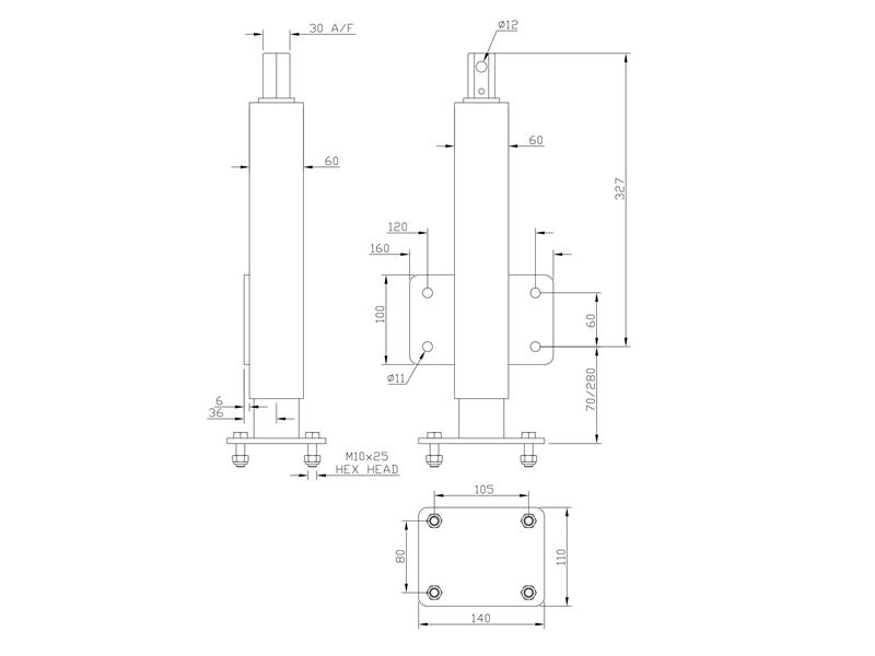 The JU600 jacking unit has a load rating up to 600kg per unit, it is used for light to medium trailer or trolley loads where the trailer or trolley bed height needs adjusting up or down. This is achieved by winding the lead screw through the Jacking units robust design mechanism.