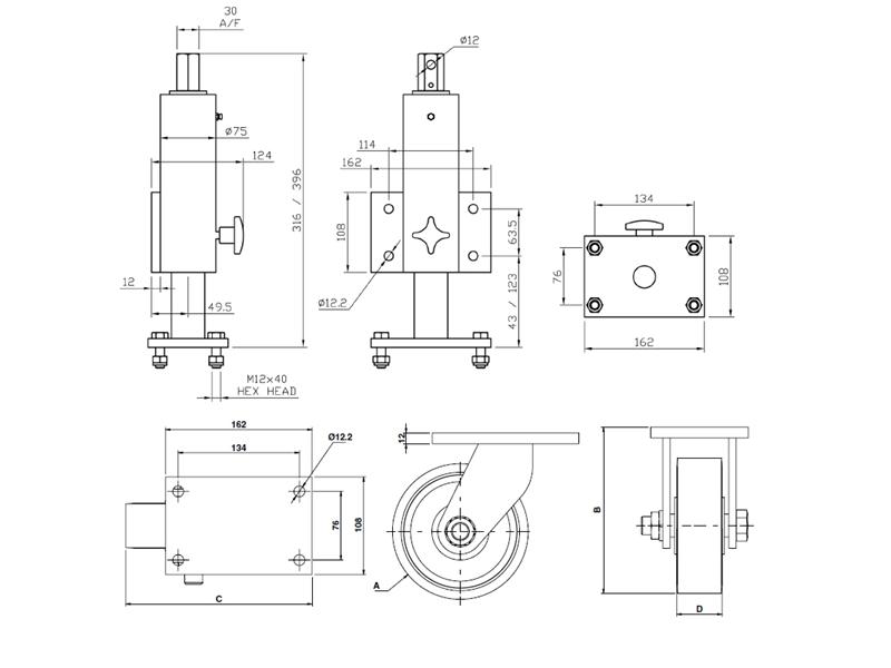 Home | Wheels & Castors | Jacking Castors | JGG (1000kg) | Jacking Unit 'Only'