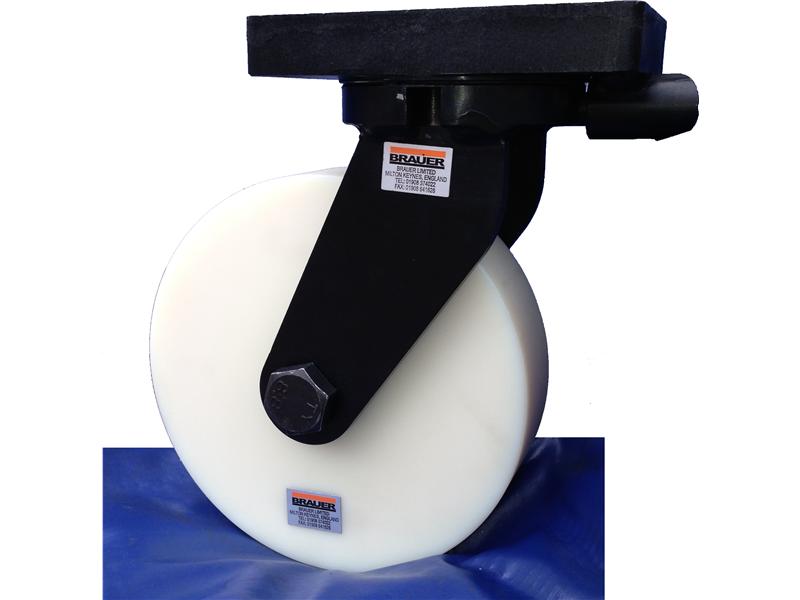 The GG range of industrial wheels and castors are one of the most popular used, taking a maximum load of 1500kg (limited by choice of wheel) making the GG castor very arduous. The Brauer GG range of heavy duty castors comes in both swivel and fixed castor brackets which are fitted with cast Nylon wheel diameters from 100mm to 250mm and wheel widths are from 40mm to 50mm. Brauer will also modify to a specific customer design should the need arise. The GG range of castors are available with individual wheel locks (W) and individual swivel locks (D) if either or both are required simply add "D" or "W" as suffix's to the part numbers below.