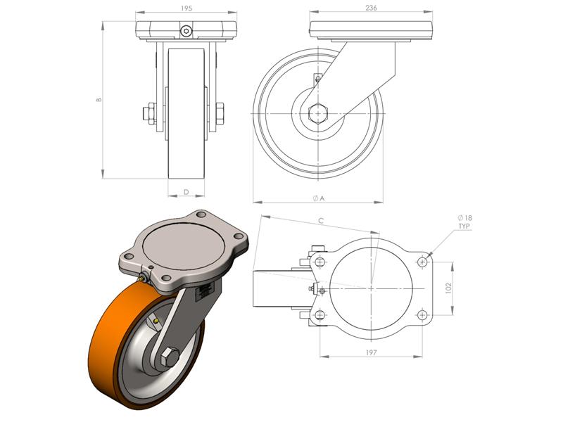 Home | Wheels & Castors | Castors | T Series (2300kg) | Swivel Castor