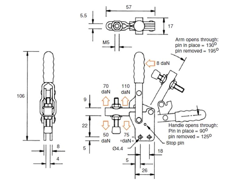Home | Toggle Clamps | Manual Toggle Clamps | Vertical Toggle Clamps | Straight Base Adjustable Spindle | V75/1BSS
